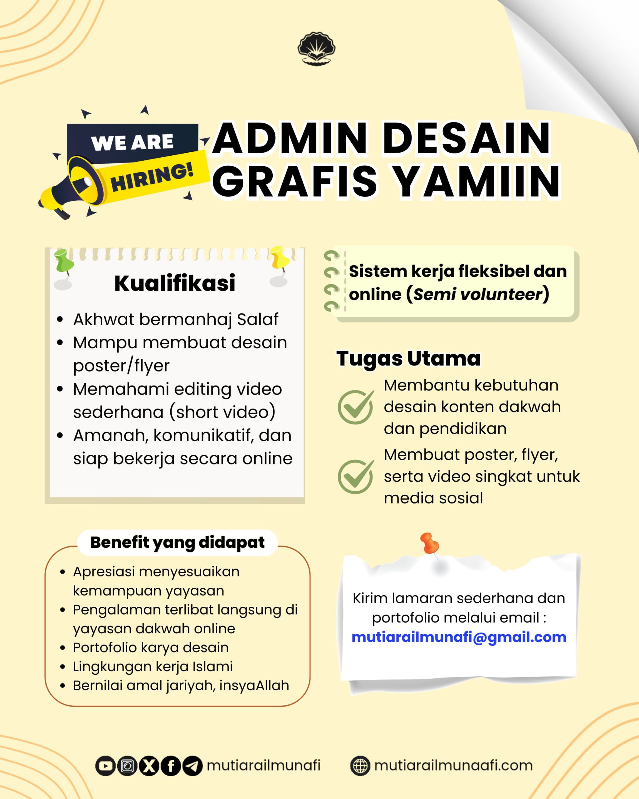 📢 𝗞𝗲𝘀𝗲𝗺𝗽𝗮𝘁𝗮𝗻 𝗕𝗲𝗿𝗸𝗼𝗻𝘁𝗿𝗶𝗯𝘂𝘀𝗶 𝗱𝗮𝗹𝗮𝗺 𝗗𝗮𝗸𝘄𝗮𝗵𝗢𝗽𝗲𝗻 𝗥𝗲𝗰𝗿𝘂𝗶𝘁𝗺𝗲𝗻𝘁 𝗔𝗱𝗺𝗶𝗻 𝗗𝗲𝘀𝗮𝗶𝗻 𝗚𝗿𝗮𝗳𝗶𝘀 𝗬𝗔𝗠𝗜𝗜𝗡 Yayasan Mutiara Ilmu Naafi membuka kesempatan bagi Antum yang memiliki…