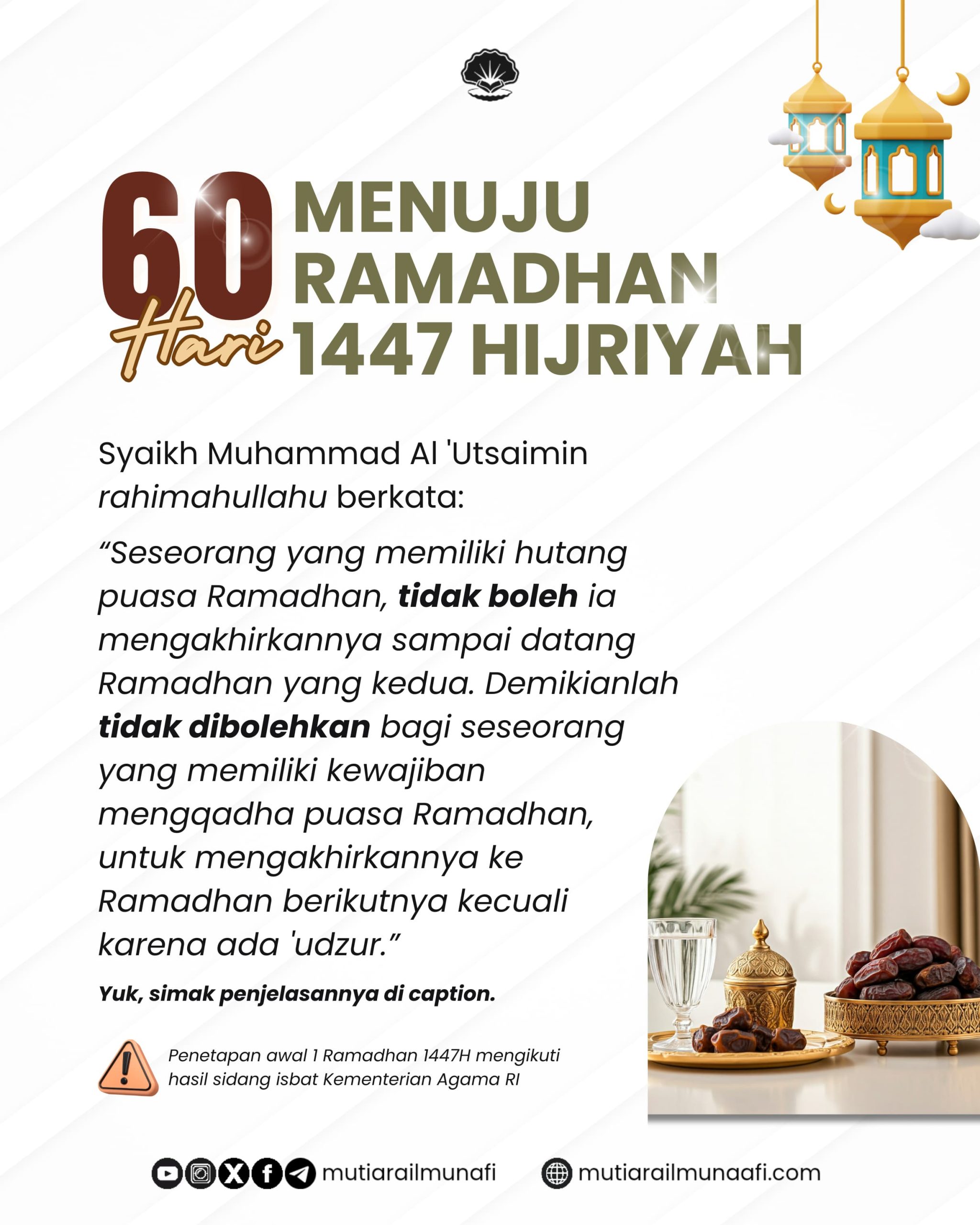 ◦•●•●•●◉🍃 𝗛 – 𝟲𝟬 🍃◉●•●•●•◦𝗠𝗘𝗡𝗨𝗝𝗨 𝗥𝗔𝗠𝗔𝗗𝗛𝗔𝗡 𝟭𝟰𝟰𝟳 𝗛 𝐌𝐄𝐍𝐆-𝐐𝐀𝐃𝐇𝐀 𝐏𝐔𝐀𝐒𝐀 𝐑𝐀𝐌𝐀𝐃𝐇𝐀𝐍 ‘Aisyah رضي الله عنها berkata: كان يكون عليّ الصوم…