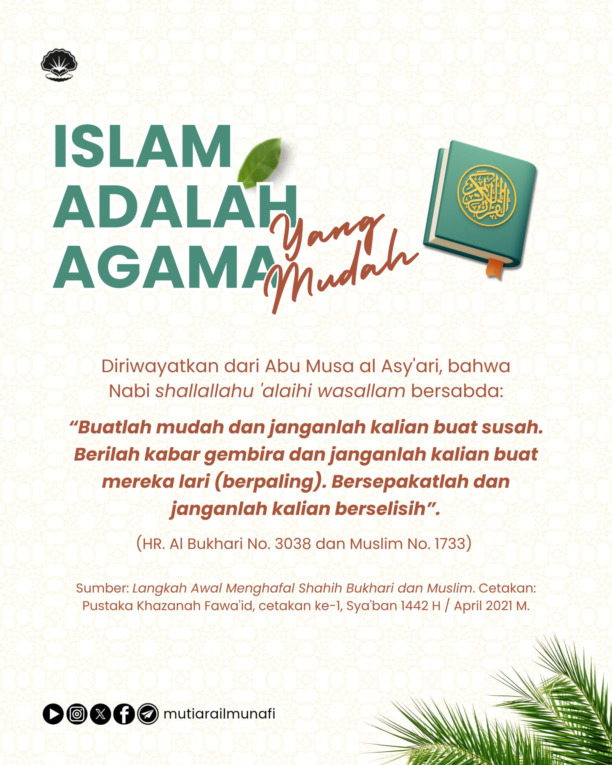 💎 𝗜𝗦𝗟𝗔𝗠 𝗔𝗗𝗔𝗟𝗔𝗛 𝗔𝗚𝗔𝗠𝗔 𝗬𝗔𝗡𝗚 𝗠𝗨𝗗𝗔𝗛 عَنْ أَبِي مُوسَى الْأَشْعَرِي عَنِ النَّبِيِّ صلى الله عليه وسلم قَالَ: (خ ۳۰۳۸ /…