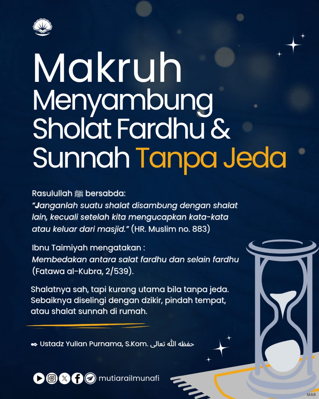 🔗 𝗠𝗔𝗞𝗥𝗨𝗛 𝗠𝗘𝗡𝗬𝗔𝗠𝗕𝗨𝗡𝗚 𝗦𝗛𝗔𝗟𝗔𝗧 𝗙𝗔𝗥𝗗𝗛𝗨 𝗗𝗘𝗡𝗚𝗔𝗡 𝗦𝗛𝗔𝗟𝗔𝗧 𝗦𝗨𝗡𝗡𝗔𝗛 𝗧𝗔𝗡𝗣𝗔 𝗝𝗘𝗗𝗔 Dari Muawiyah radhiallahu’anhu, beliau berkata: فإنَّ رَسولَ اللهِ صَلَّى اللَّهُ…