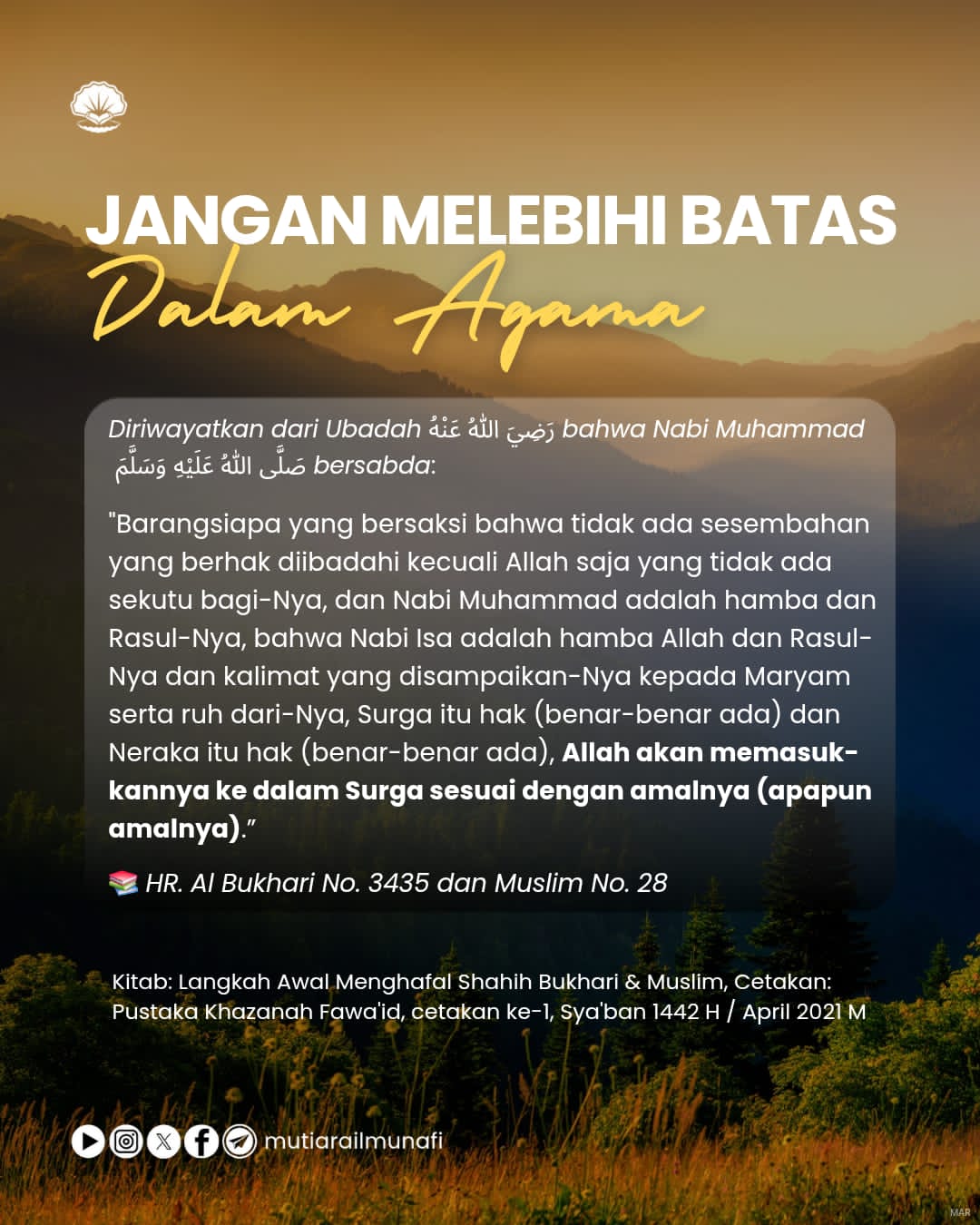 🌱 𝗟𝗔𝗥𝗔𝗡𝗚𝗔𝗡 𝗠𝗘𝗟𝗔𝗠𝗣𝗔𝗨𝗜 𝗕𝗔𝗧𝗔𝗦 𝗗𝗔𝗟𝗔𝗠 𝗕𝗘𝗥𝗔𝗚𝗔𝗠𝗔 عَنْ عُبَادَةَ رضي الله عنه عَنِ النَّبِيِّ صلى الله عليه وسلم قَالَ:“مَنْ شَهِدَ أَنْ…